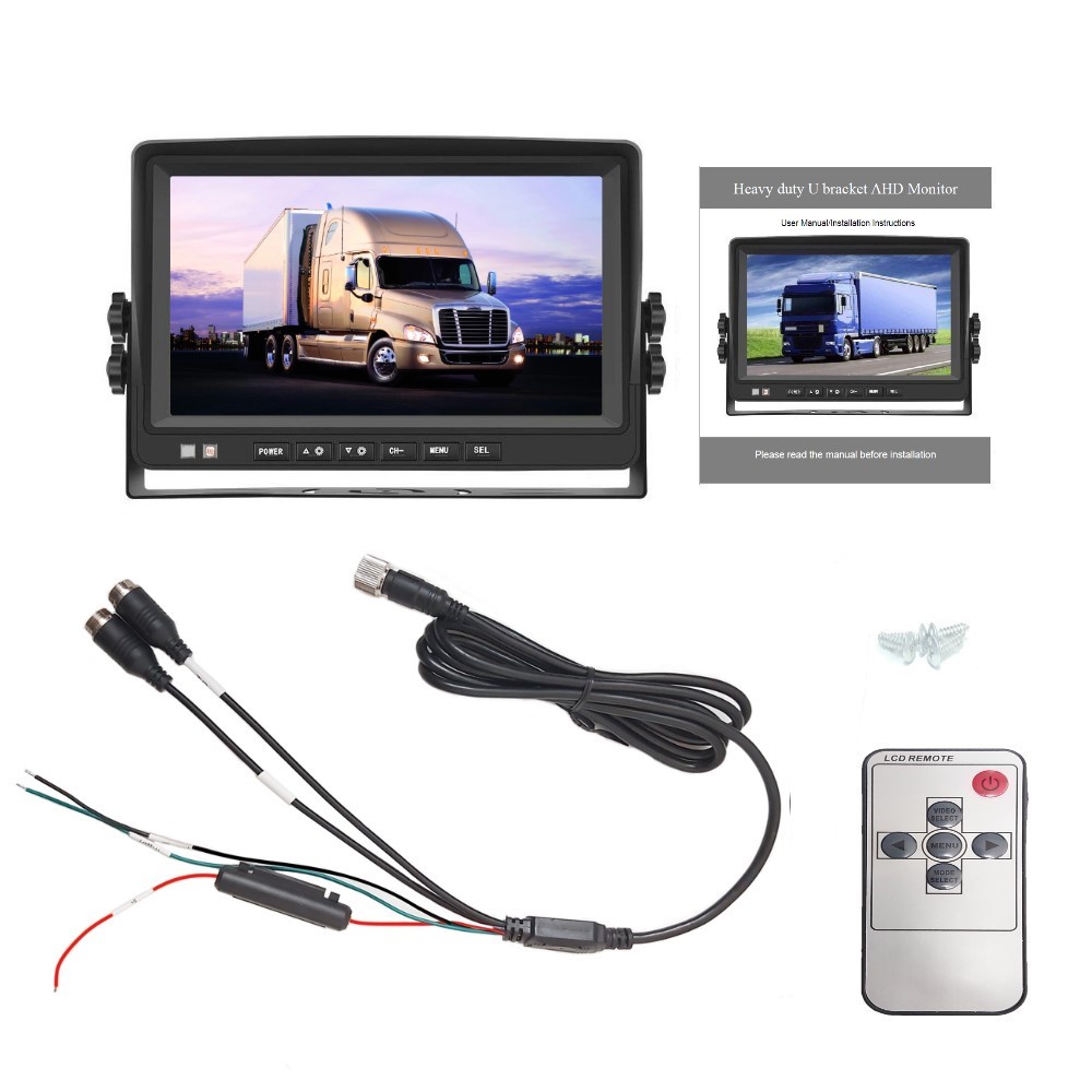 Accessories:monitor+Manual+Tail cable+bracket+sticker+remote control+screws+Sun canopy