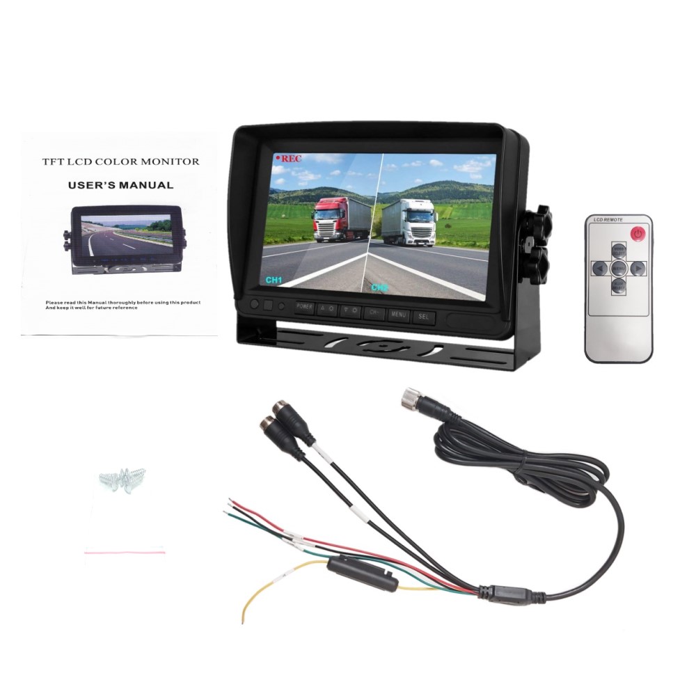 Accessories:monitor+Manual+Tail cable+bracket+sticker+remote control+screws+Sun canopy