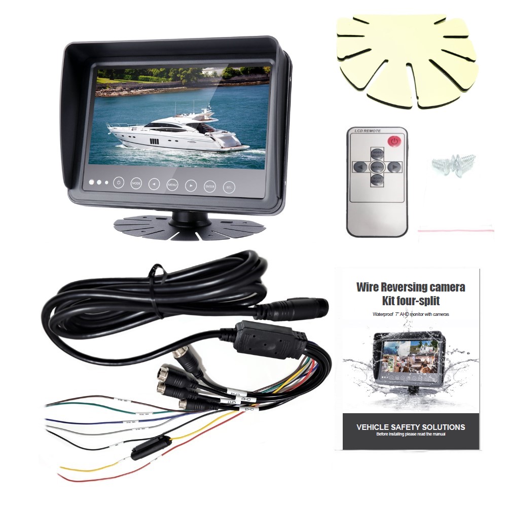 Accessories:monitor+Manual+Tail cable+bracket+sticker+remote control+screws+Sun canopy