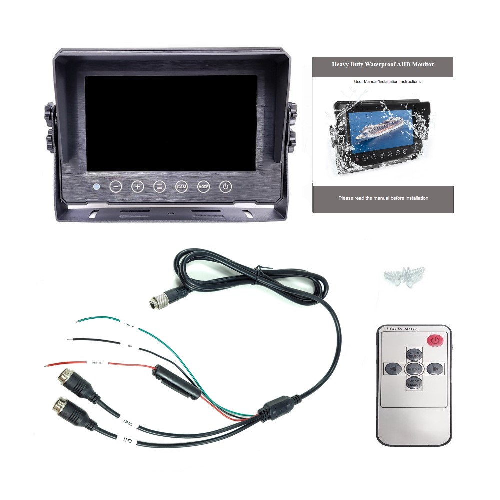 Accessories:monitor+Manual+Tail cable+bracket+sticker+remote control+screws+Sun canopy