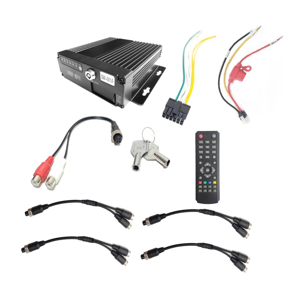 ●Accessories:MDVR+Manual+power cable+remote control+io cable+adapter+4*6pin to 4pin adapter+key+screws