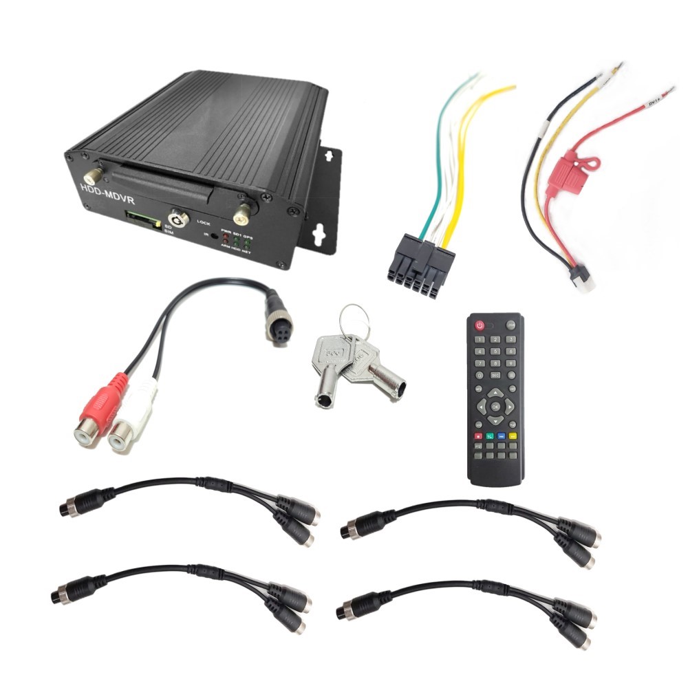 ●Accessories:MDVR+Manual+power cable+remote control+io cable+adapter+4*6pin to 4pin adapter+key+screws