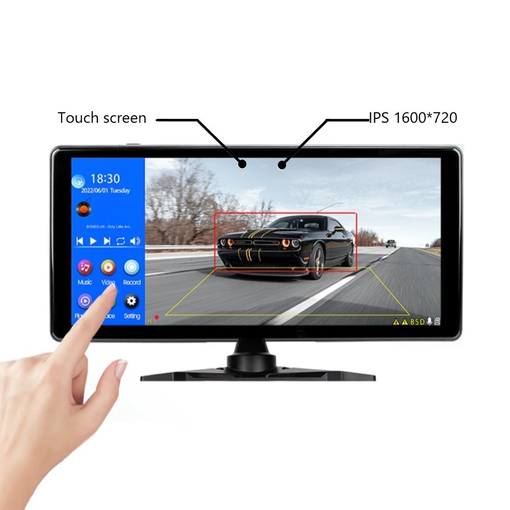 IPS touch screen:1600*720, brightness:500cd/m², Contrast: 500:1, view angle:U:85,D:85, R/L:85