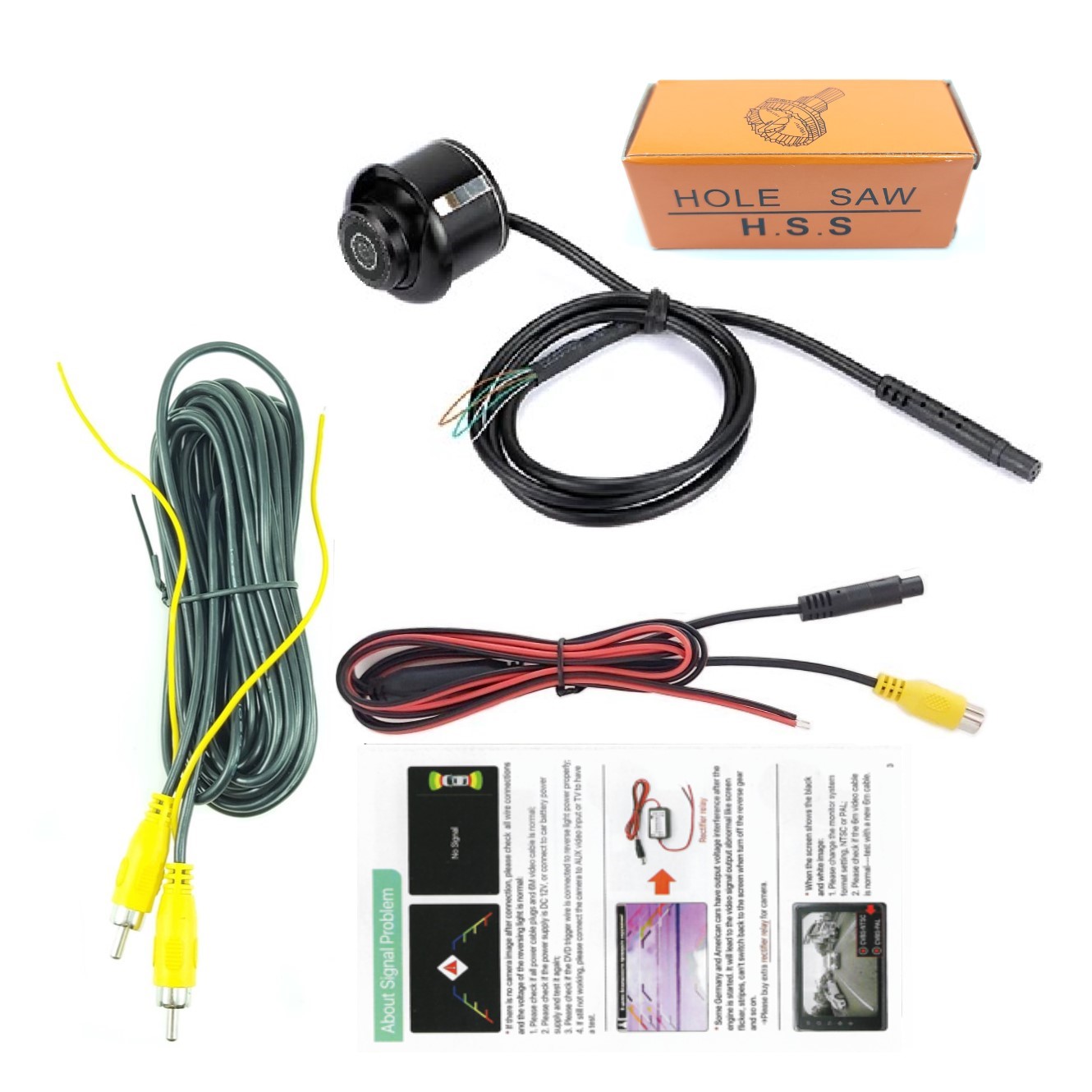 Accessories: camera+Manual+6M video cable+ BMW to RCA cable+ drill